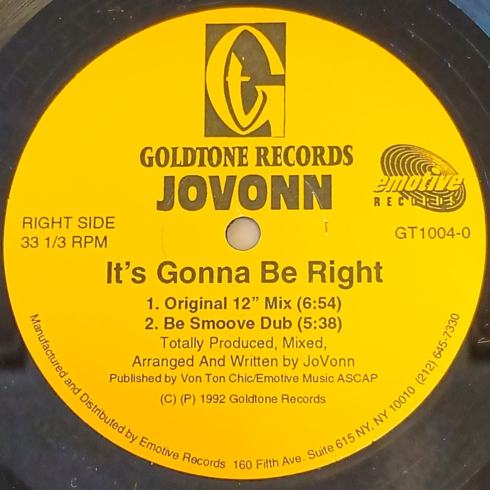 Jovonn / It's Gonna Be Right [Used 12inch]